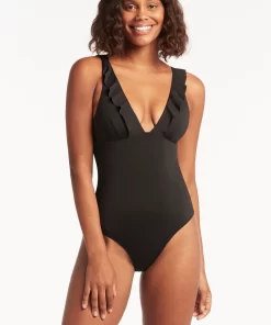 Sea Level Women’s Swimwear Eco Essentials Black One Pieces Eco Essentials Frill One Piece | Black