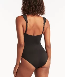 Sea Level Women’s Swimwear Eco Essentials Black One Pieces Eco Essentials Frill One Piece | Black