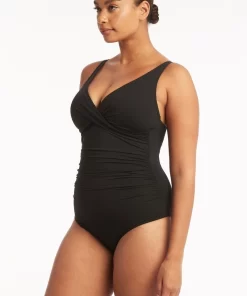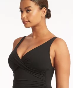 Sea Level Women’s Swimwear Eco Essentials Black Eco Essentials Cross Front Multifit One Piece Best Sellers | Black