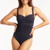 Sea Level Women’s Swimwear Eco Essentials Khaki Eco Essentials Cross Front Multifit One Piece | Khaki