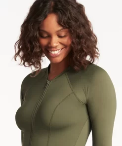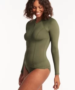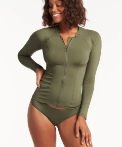 Sea Level Women’s Swimwear Eco Essentials Khaki Tankinis Eco Essentials Long Sleeve Rash Vest – Full Zipper | Khaki