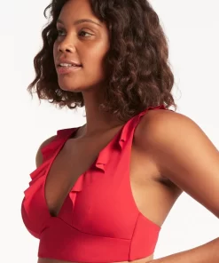 Sea Level Women’s Swimwear Eco Essentials Red Eco Essentials Frill Bra Top Tops | Red