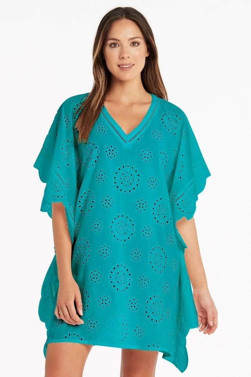 Sea Level Women’s Vacation Embroidery Kaftan Surf Poncho | Seafoam